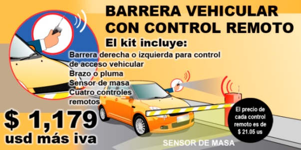 Todas nuestras barreras o plumas para control de acceso vehicular en kit, incluyen 2 controles remotos